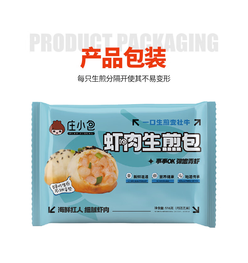 庄小包虾肉生煎包516g(12只)早餐夜宵面食速冻生煎包子