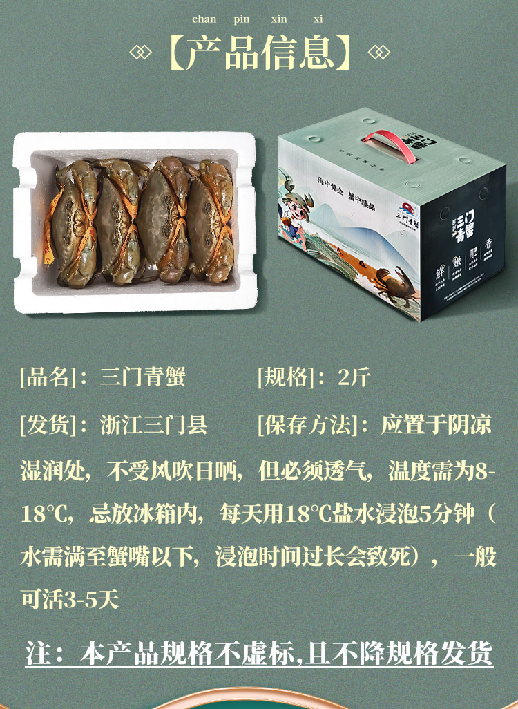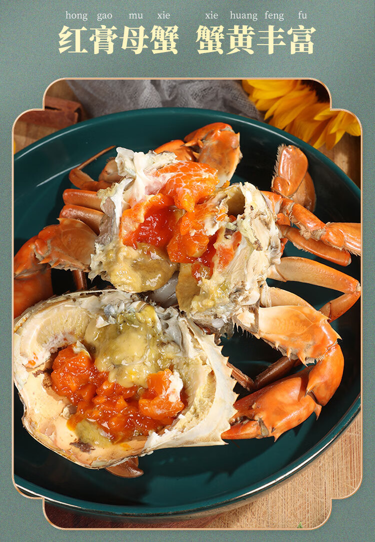首鲜道【活蟹】三门鲜活青蟹中秋礼盒鲜活发货大螃蟹大红膏蟹母红膏蟹 公母搭配 3-5只 2斤净重【保活】