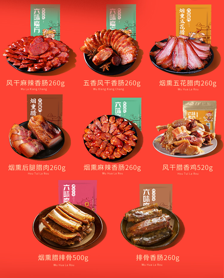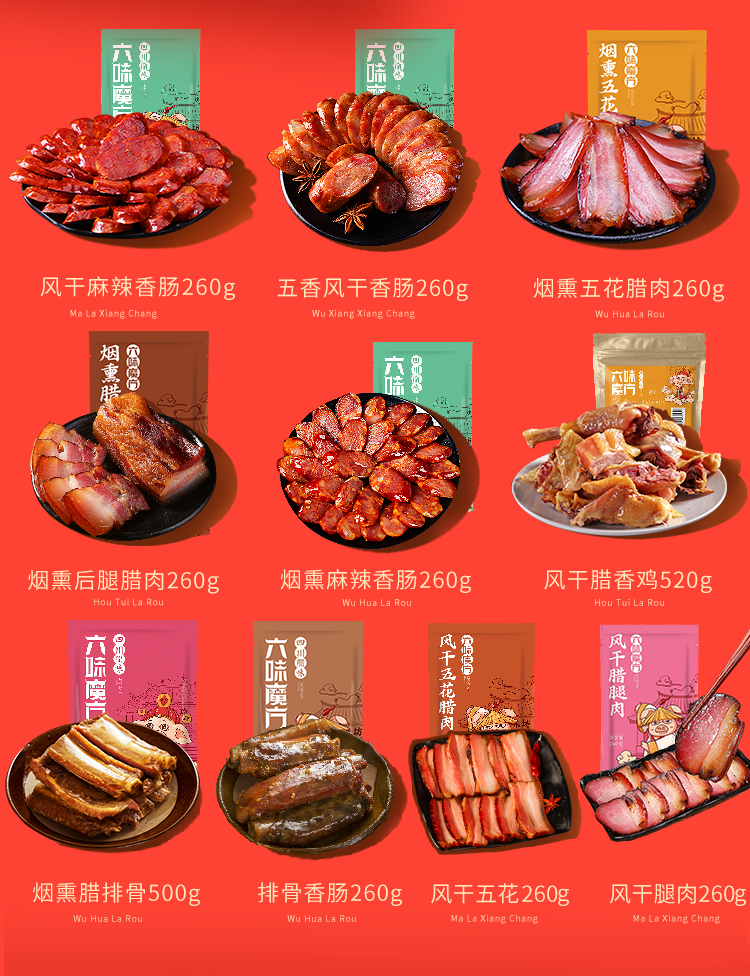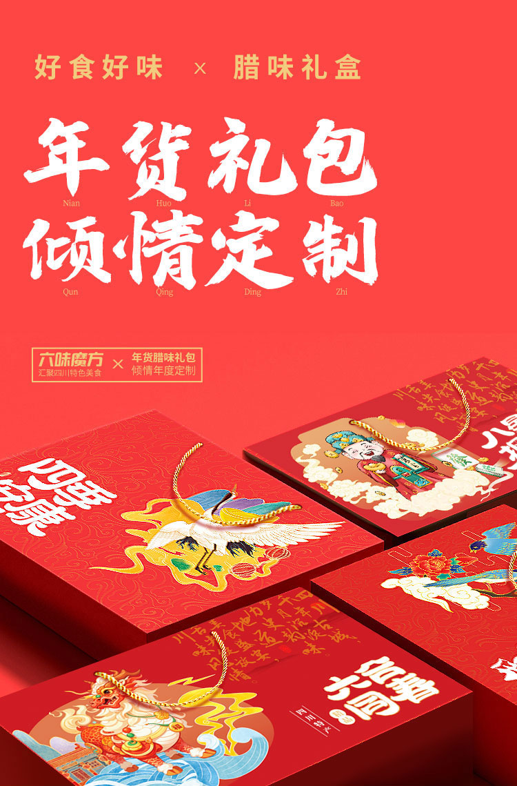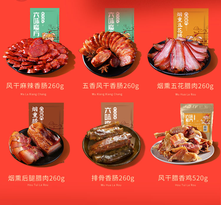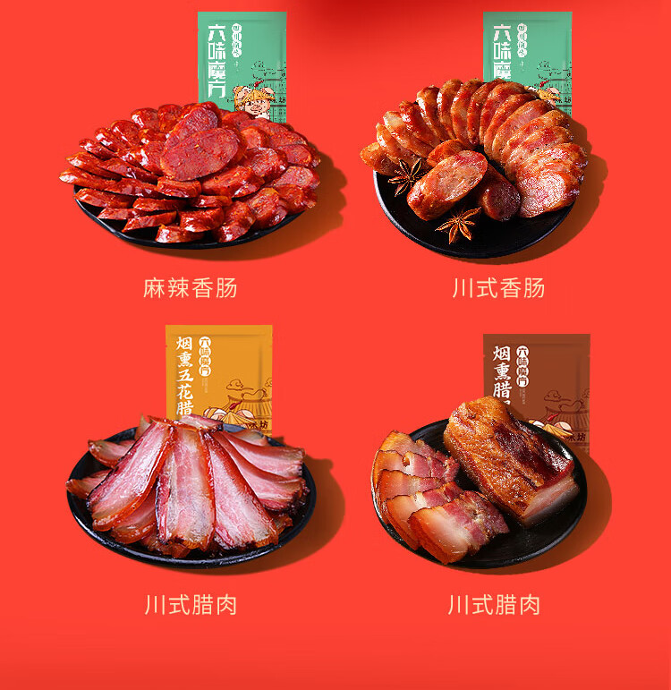 六味魔方腊肉礼盒正宗四川特产麻辣香肠风干腊肠烟熏五花肉熟食腊味1040g