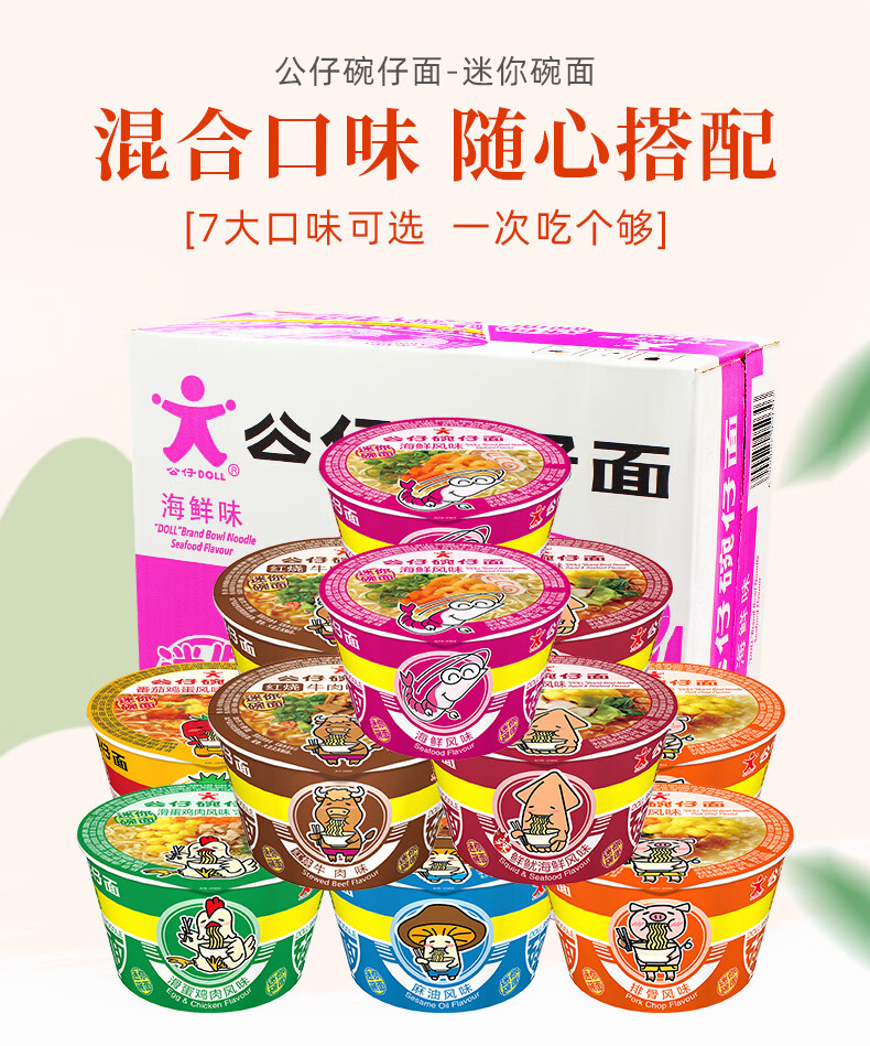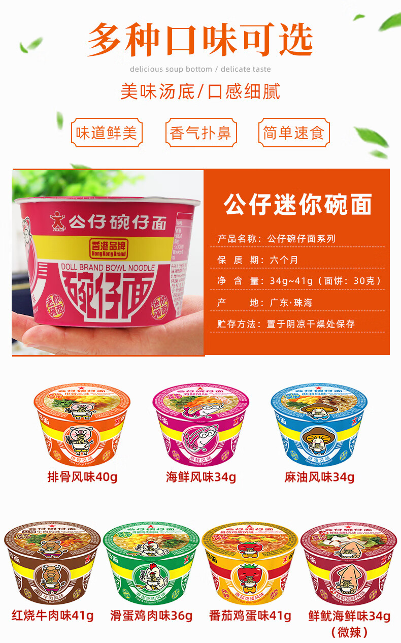 公仔 香港公仔面迷你碗仔面方便面小碗泡面桶装杯面 泡面夜宵方便速食 番茄味18碗