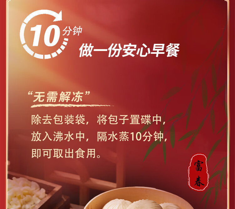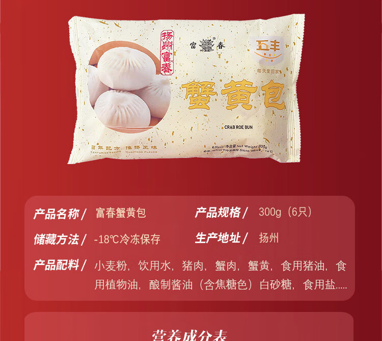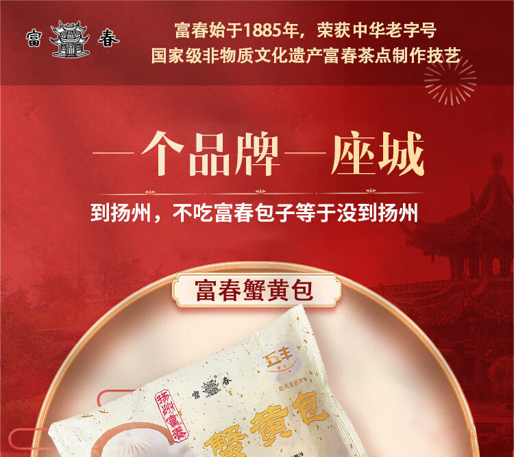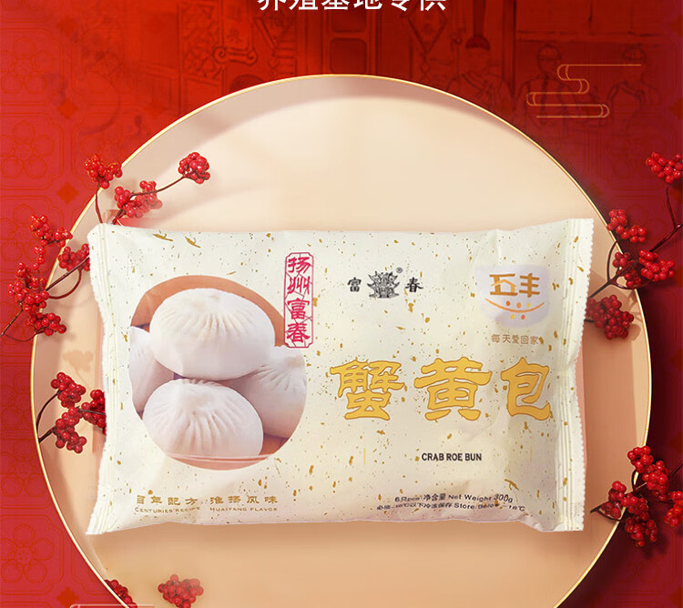 富春 蟹黄包300g 6只早餐包子 蟹肉包速食面食 扬州特产包子速冻蒸包