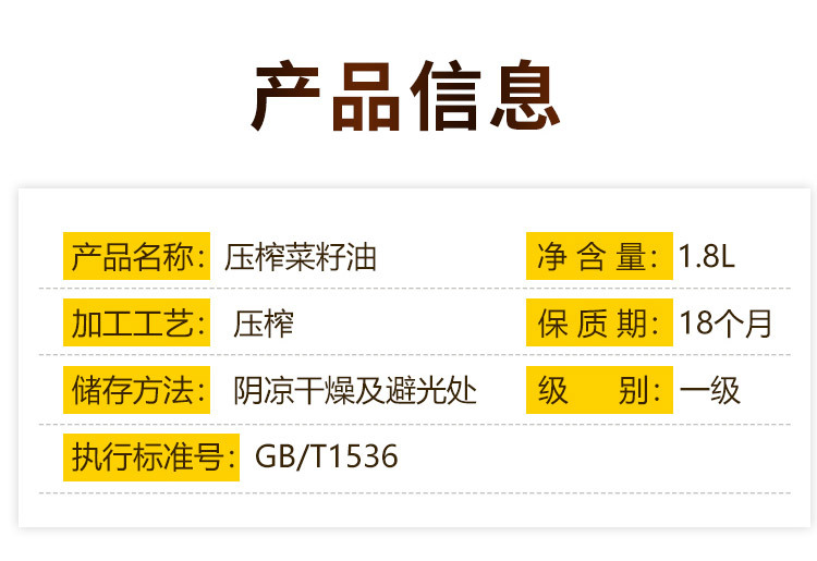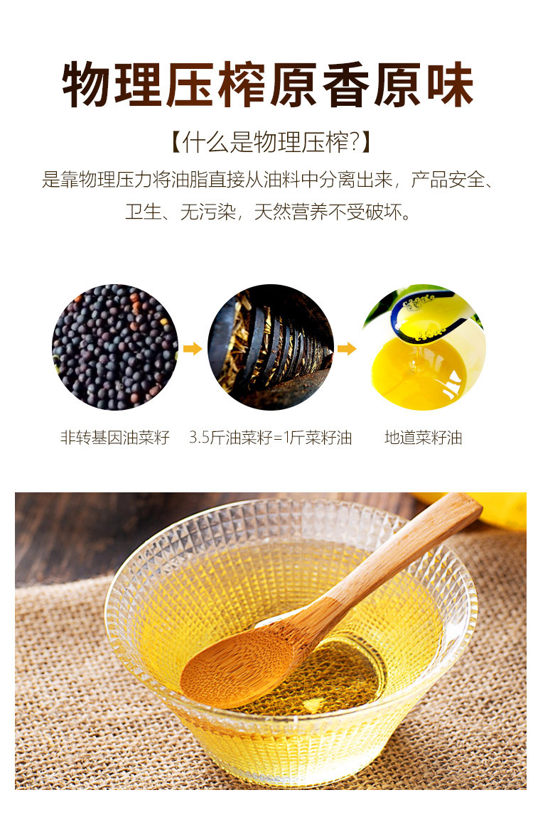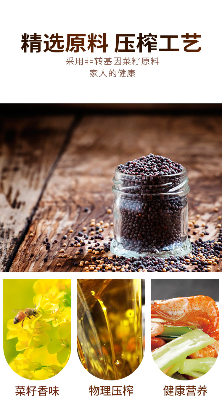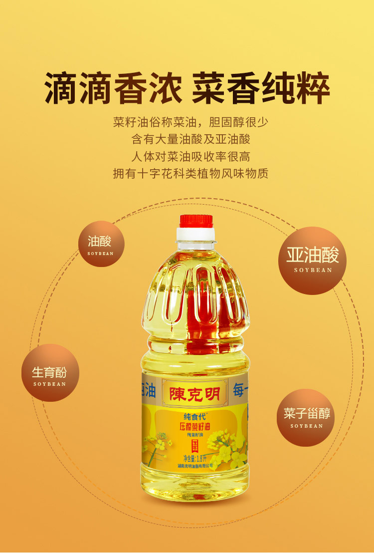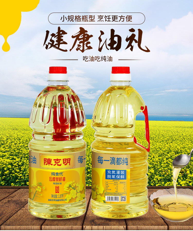 陈克明正宗纯菜籽油一级压榨食用油家用非转基因1.8L粮油商用批发
