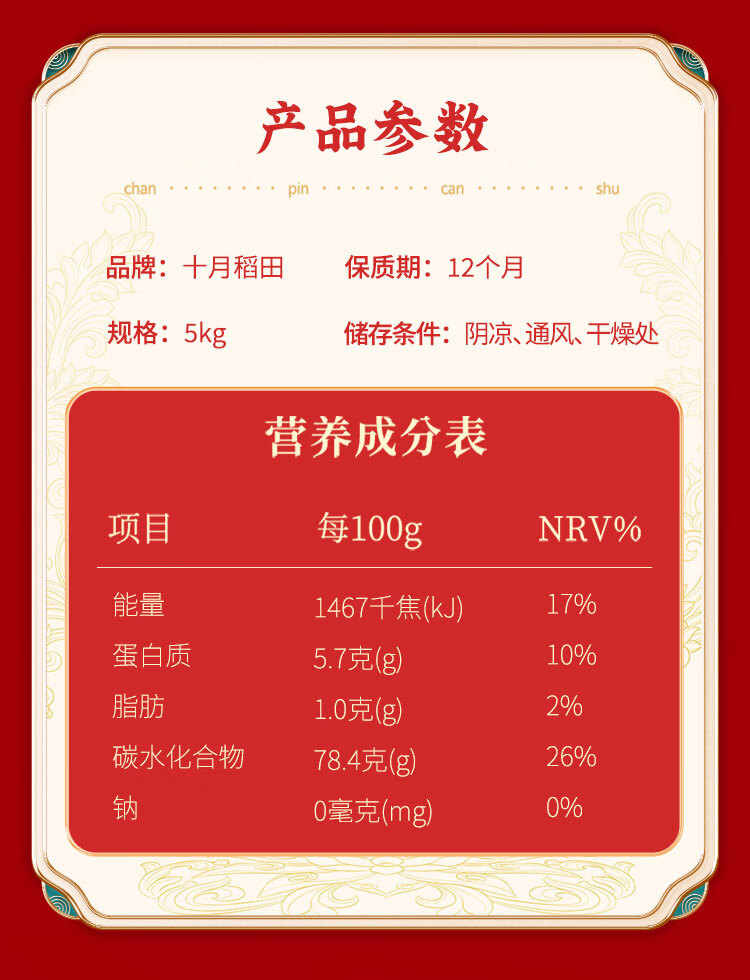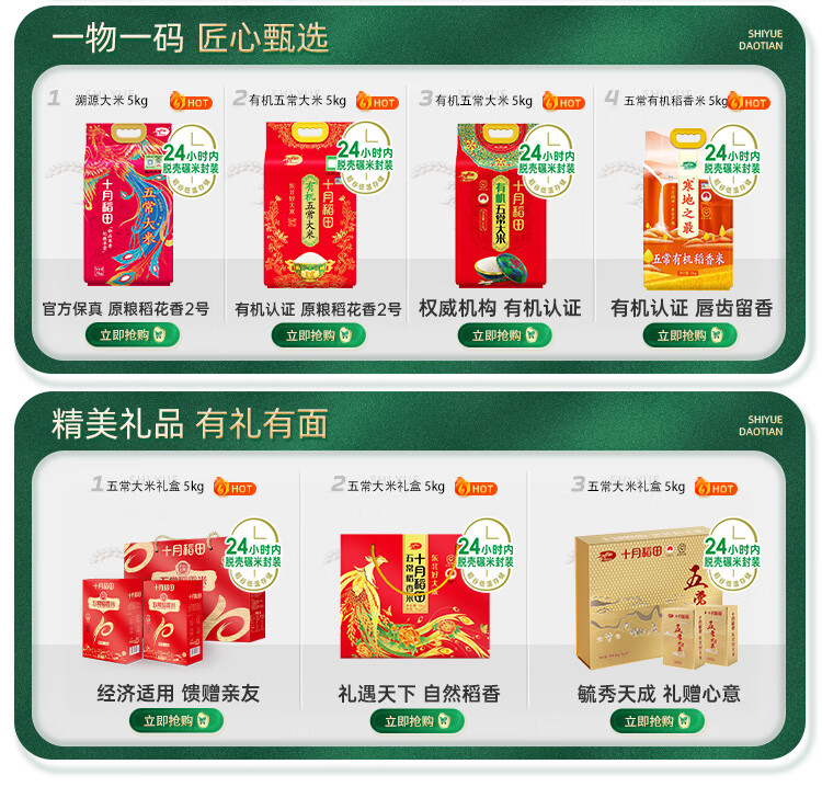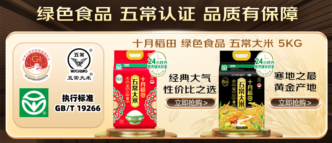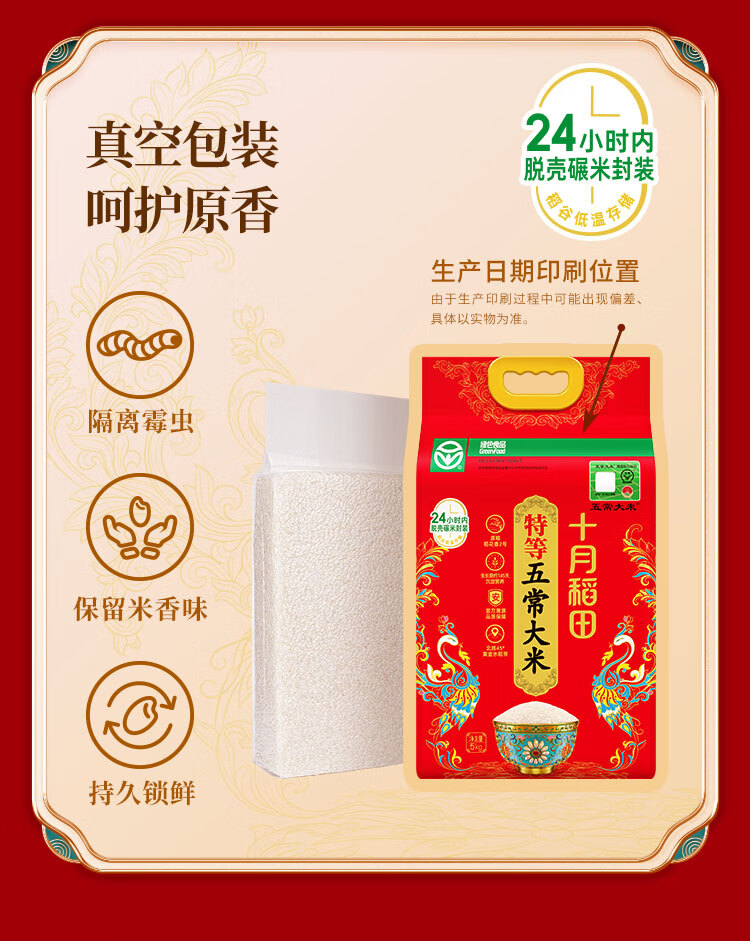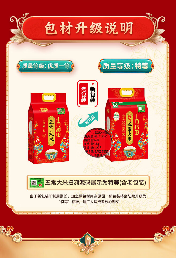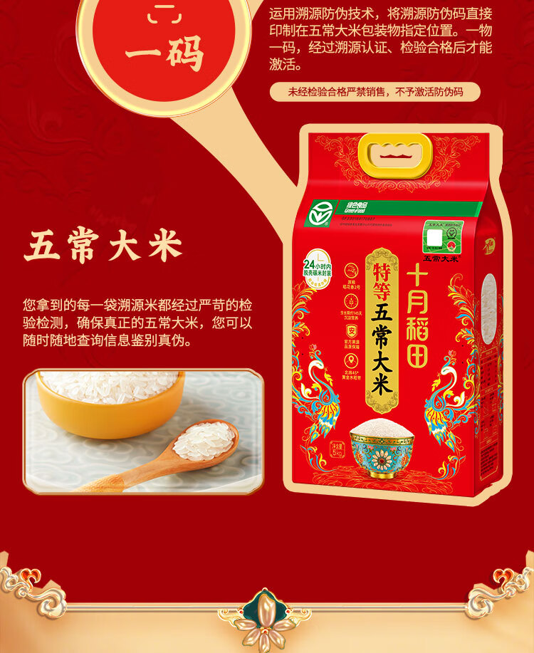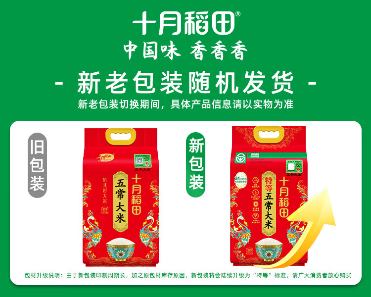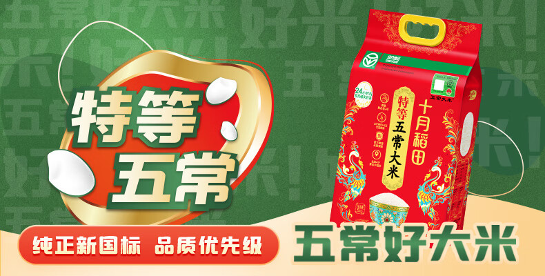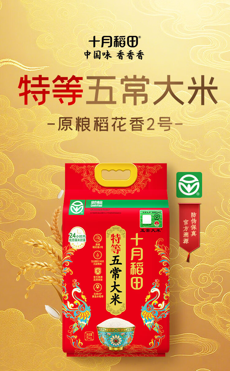 十月稻田 特等五常大米 绿色食品 10斤(官方溯源 原粮稻花香2号 特级大米)
