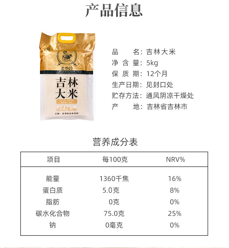 老爷岭 吉林东北大米10斤 秋田小町 粳米 香米 真空包装