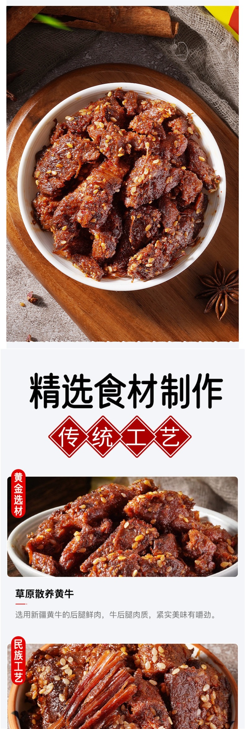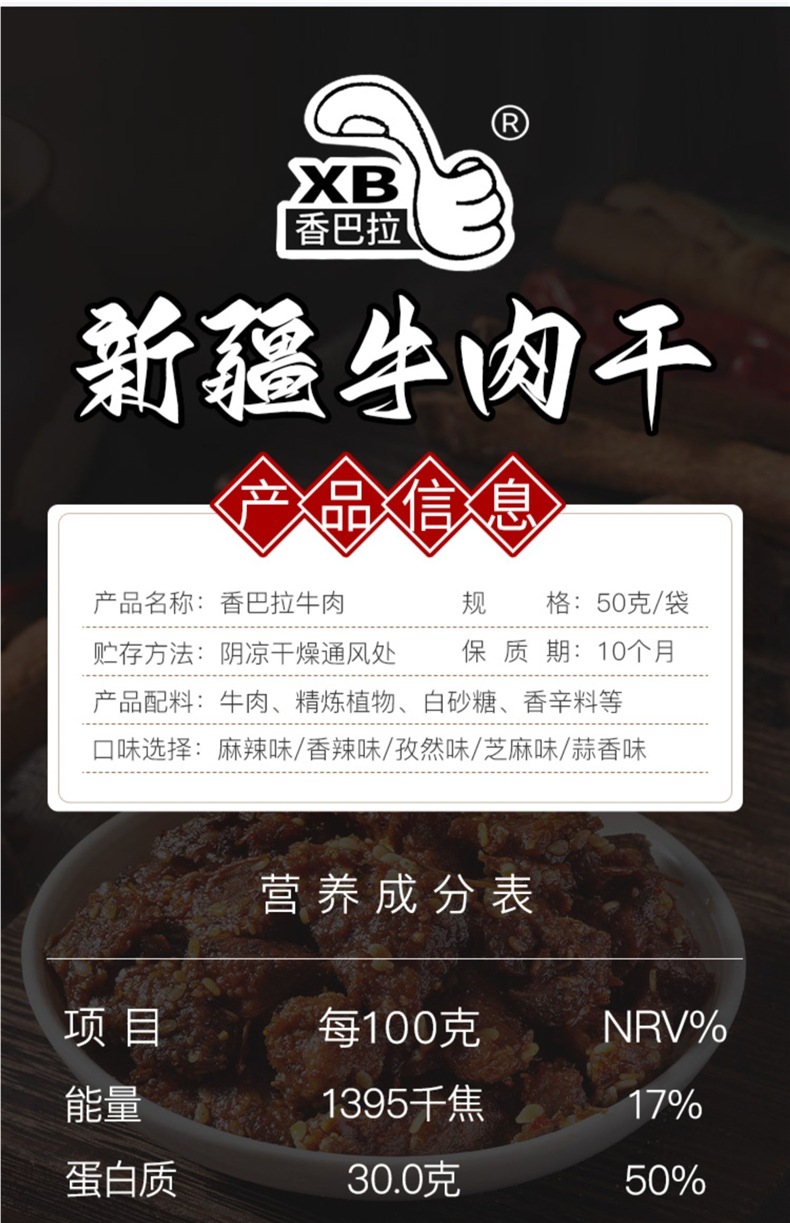 新疆香巴拉清真牛肉干50g*5袋惠真空包装新疆烤肉酱卤牛肉包邮